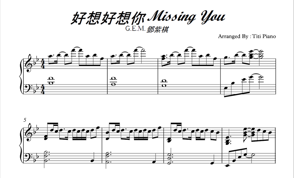 G.E.M.鄧紫棋 - 好想好想你 Missing You By Titi Piano